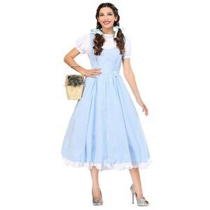 This is a classic Wizard of Oz Dorothy womens adult costume, the "Deluxe Kansas Girl Costume for Women" from halloweencostumes.com. It's in excellent condition and has only been worn a few times. Comes from a clean and smoke-free home.