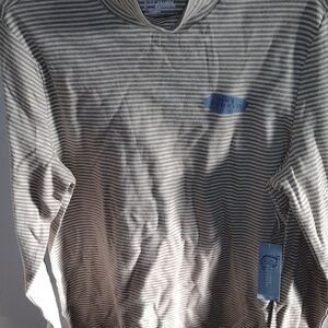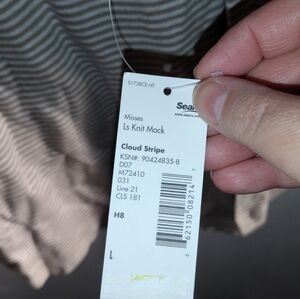 Classic Elements tan and white cloud stripe misses knit mock neck top. 100% cotton. Soft. Large. 21" across laid flat. 25 1/2" long. Some stretch. New with Tags.