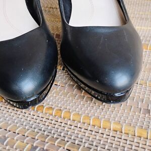 Tahari Black Leather Platform Pumps Heels Women's Shoes 9M