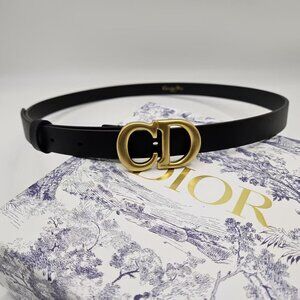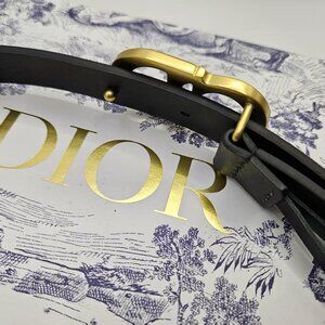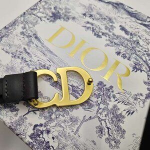Classic black Dior belt with gold CD buckle