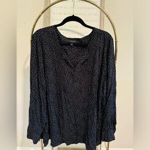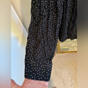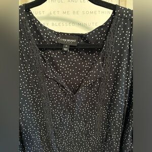 Classic black and white Polka dot long sleeve blouse. Size 22. Lace detail on the front and slightly gathered at the bottom of the sleeve adds a more formal detail. Could be dressed up or down.