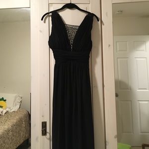 Classic black formal dress with a low cut neckline with beaded décolletage. Worn once and in perfect condition. Pair with fun heels for the perfect formal event! Feel free to make offers!