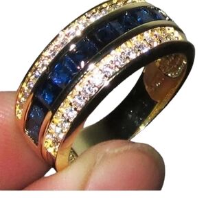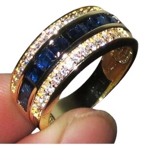 Classic blue rhinestones inlaid center , each side white clear rhineston…