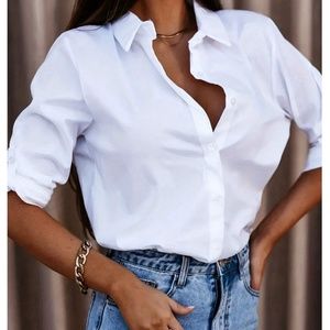 Classic button Down poplin Boyfriend Rolled Sleeve shirt