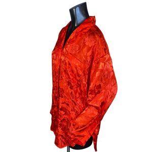 Classic by J.O. Red Floral Pajama Top Women SZ Large Oversized Button Down