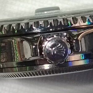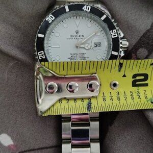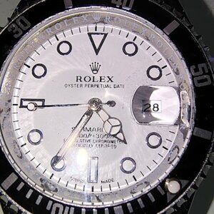 This is a classic silver and black watch with a white face and that it is known by many. I don't know much about it as it was a gift to me and I don't wear watches. I do know that it has no scratches or defects and keeps perfect time. Please give me a reasonable offer as I have it listed in several places and it won't be available for long!