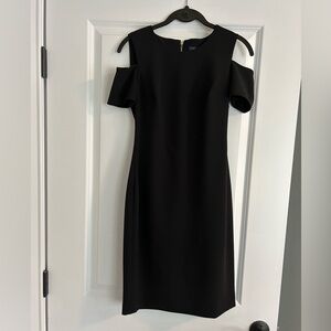 Classic elegant Black cold shoulder Tommy Hilfiger Dress with gold zipper back