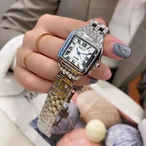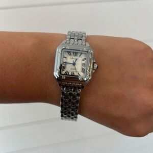 Elevate your wristwear with this Classic silver - Tone Roman Numeral Watch. Featuring a timeless square face design, this watch is framed with a sleek gold-tone bezel and paired with a polished link bracelet for a sophisticated look. The dial showcases bold Roman numerals and classic blue watch hands for a touch of vintage charm. Perfect for daily wear or formal occasions, this piece is versatile and exudes understated elegance.