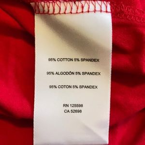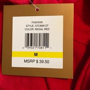 Great regal red color. Bright, but not too loud. NWT. True to size medium.