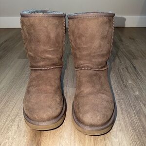 Taupe-brown with faint mauve (purple-gray) undertones. Worn a handful of times years ago. Still in good condition.