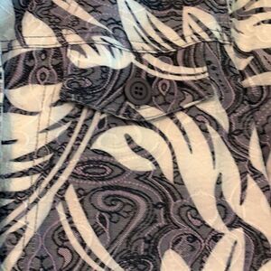 Size small Baxter and Wells. The colors are purple white and gray. High quality and like new condition. This brand chance to run a little large. See all pictures for measurements