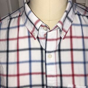 Classic Cotton Check Print Slim Fit Shirt. Buttoned neck. Extra buttons.