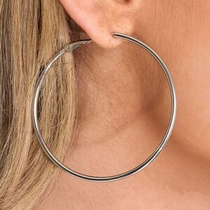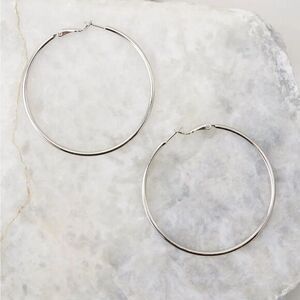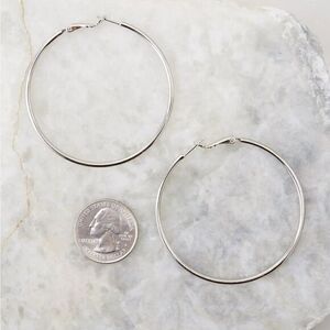 Classic Lightweight Hoop Earrings. Thin design with post secure backing. Measures 2.5” diameter.