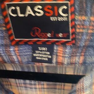 4 oz 100% cotton, closure type button, button down collar and pocket. Size : 8 New with tag💦💦