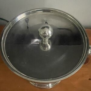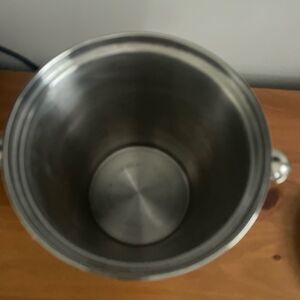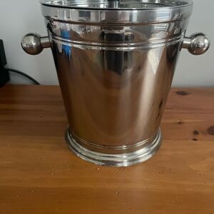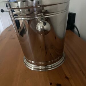 Enhance your dining experience with this preowned silver ice bucket. Perfect for keeping your beverages chilled. Its sleek design adds a touch of sophistication to any setting.