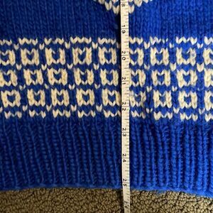 This is amazing! So everything! Handmade in India and heavy wool. No holes or issues. Pullover with turtleneck. Please see photos of measurements. I am guessing a Mens medium so please compare measurements on your favorite sweater!!!!