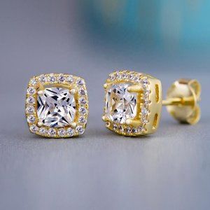 ✨Classical Square Gold Plated Round Zircon Stud Earrings forWomen/Men,UNVN12436
