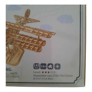 Classical 3D wooden puzzle of an airplane. Features intricate laser cutting.