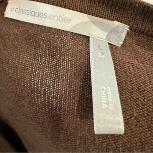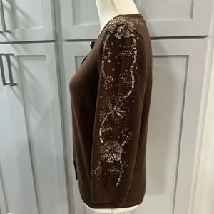 Classics Entier Beaded Wool Silk Cashmere Brown Hidden Snap Cardigan Large