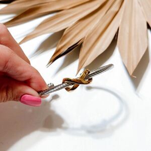 Two tone textured minimalist bangle in gold and silver tone