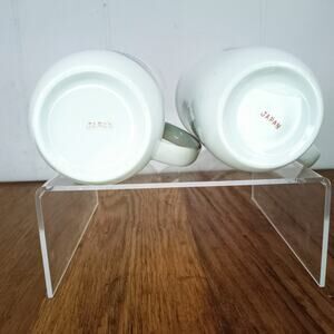 Vintage set of two mugs by Classique Mugs 'n' Mats Collection. 1 Snowman and one Santa. These are regular sized mugs and look like they hold the standard 8 ounces. No chips or cracks, I believe that these were never used. As they are vintage I would suggest only washing them by hand.