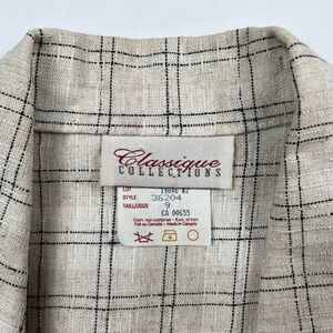 Classique Collections Vintage Linen Blend Glen Check Blazer 9/M Beige Retro Y2K