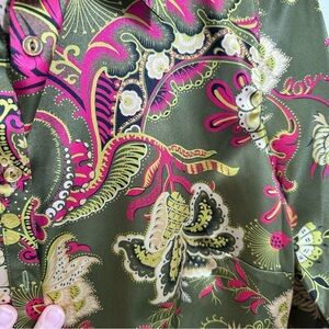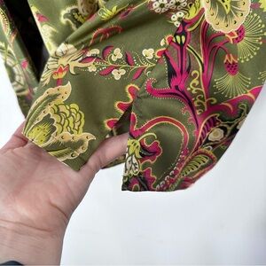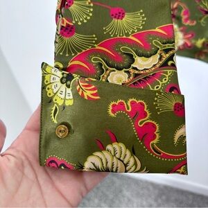 Classique Entier Dark Green Pink Paisley Long Sleeve Button Down Blouse Size 8