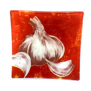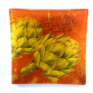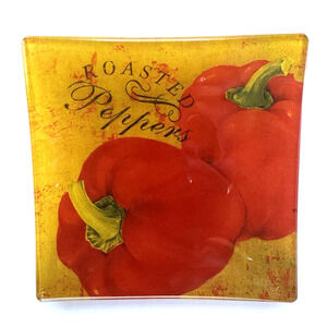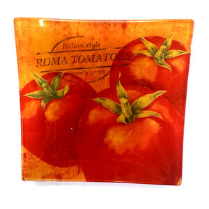 Classique Italiano Veggies 6" Square Glass Dishes Set of 4 Assorted Images. No chips or cracks. Great Condition. Bold, bright colors. Great addition to your table or a Holiday or Party Spread.