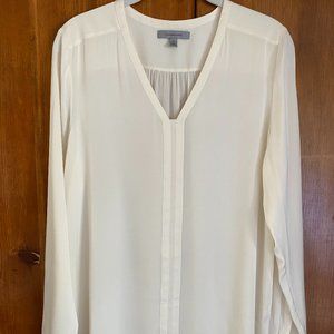 Classiques Entier Silk Blouse in a Beautiful Ivory Cloud - NEVER WORN - PERFECT CONDITION - Vneck - Stretch Silk - Long Sleeve - 95% Silk - 5% Lycra - Professional Dry Clean Only - Size S