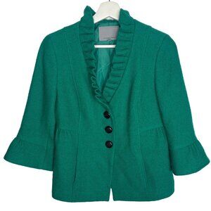 Classiques Entier Blazer Womens Jacket Green Ruffles Peplum Academia Preppy Sz S