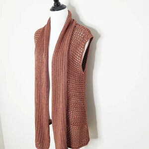 Classiques Entier Brown Crochet Knit Sleeveless Boho Cardigan S