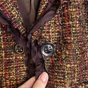 Classiques Entier Brown Tweed Wool Blend Ruffled Trim Front Clasp Blazer Small