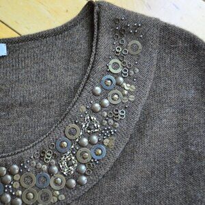 Classiques Entier Brown Wool Blend Embellished Dress Size L