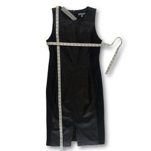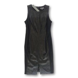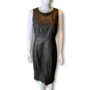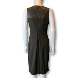 Classiques Entier Women's Brown Chestnut Sleeveless Butter Soft Leather and Ponte knit Tailored Lined Shift Dress. Back Zip and hook and eye closure