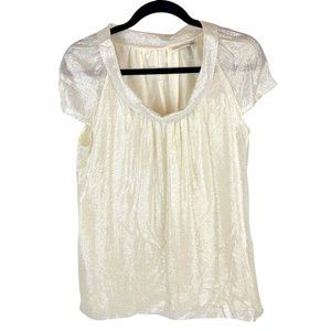 Classiques Entier Metallic Cream Gold Silk Blend Boat Neck Cap Sleeve Top Medium