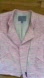 Beautiful red and white tweed-y blazer with off-center asymmetrical exposed zipper. Slash pockets, long sleeves.