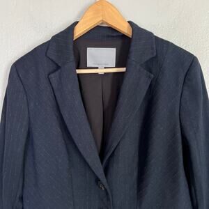 Classiques Entier Navy Blue Viscose Nylon Blazer Jacket Women Size 12 Pinstriped