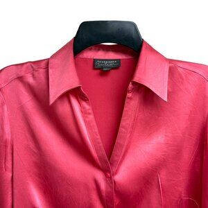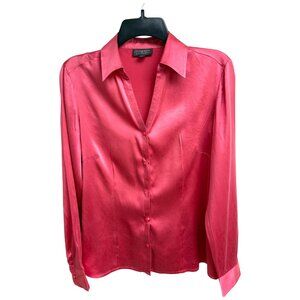 Classiques Entier Pink Silk Blend V Neck Button Up Luxe Blouse
