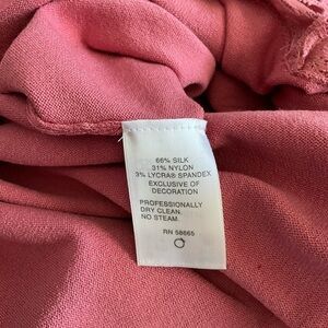 Elegant pink sweater with lace detail. V-neck design. Button front closure. Perfect for layering.