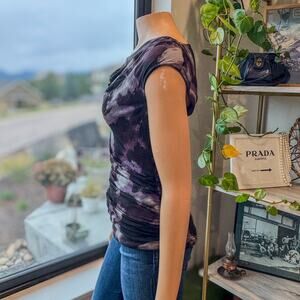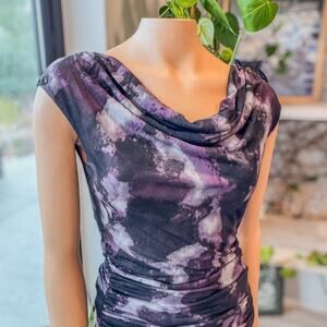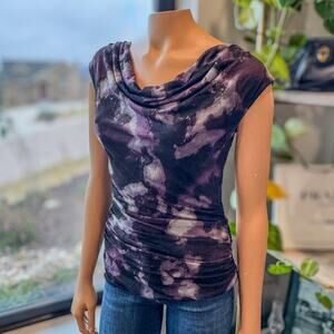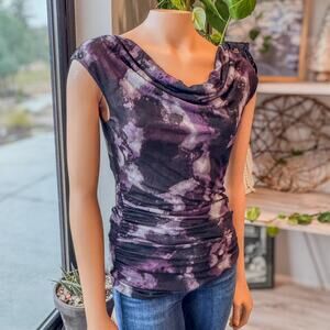Classiques Entier, Silk Blend Cowl Neck Drape Blouse Black Purple Gray, Medium