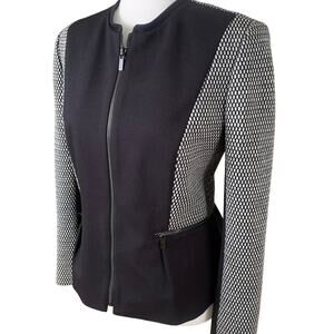 Classiques Entier Size M Women's Zip Up Wool Blend Blazer Jacket Gray Black Fitted Flattering