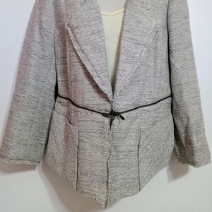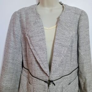 Classiques Entier grey tweed blazer jacket, size medium. Raw edge cropped Nordstrom jacket with optional zip bottom.