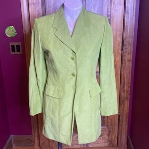 Classiques Entier VTG 90s Silk Linen blend deep green blazer jacket coat Sz 2