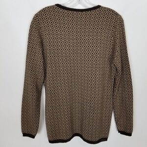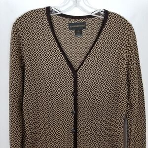 Classiques Entier Women Printed Merino Wool Cardigan Sweater Sz M Brown Button