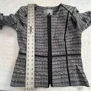 Classiques Entier Womens Blazer Jacket Size 6P Black & White Plaid Linen Blend