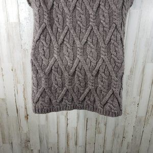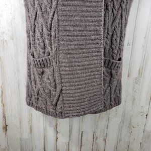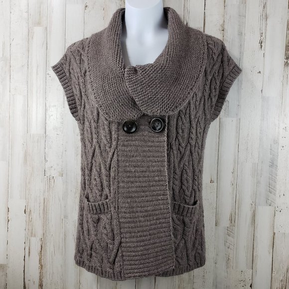 Classiques Entier Womens Cardigan Brown Big Buttons Oversize Peter Pan Collar Cable Knit Cap Sleeve