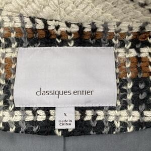 Classiques Entier Womens Gray Black Brown Bias Plaid 3/4 Sleeve Jacket Size S