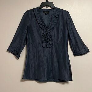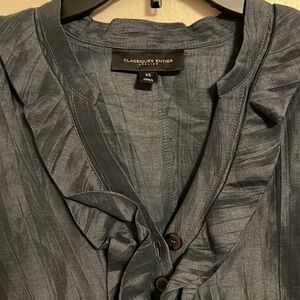 Classiques Entier Women's Iridescent Blue-Gray Linen-Blend Tunic Blouse Sz XS