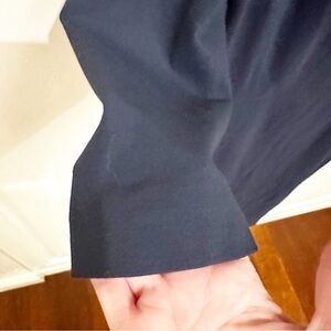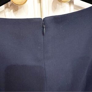 Classiques Entier - Women’s Navy Blue Classic Office Knee Length Ponte Lined Dress 3/4 Sleeve Square Cut Out Neckline Detail, Zips up Back, Stretchy
