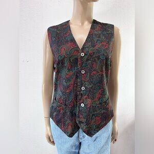 This vest is made of high-quality silk that provides a luxurious feel against your skin. The striking floral pattern on the vest adds a pop of color to your outfit, making it perfect for any season. Whether you're looking for something casual or dressy, this vest is sure to make you stand out from the crowd.